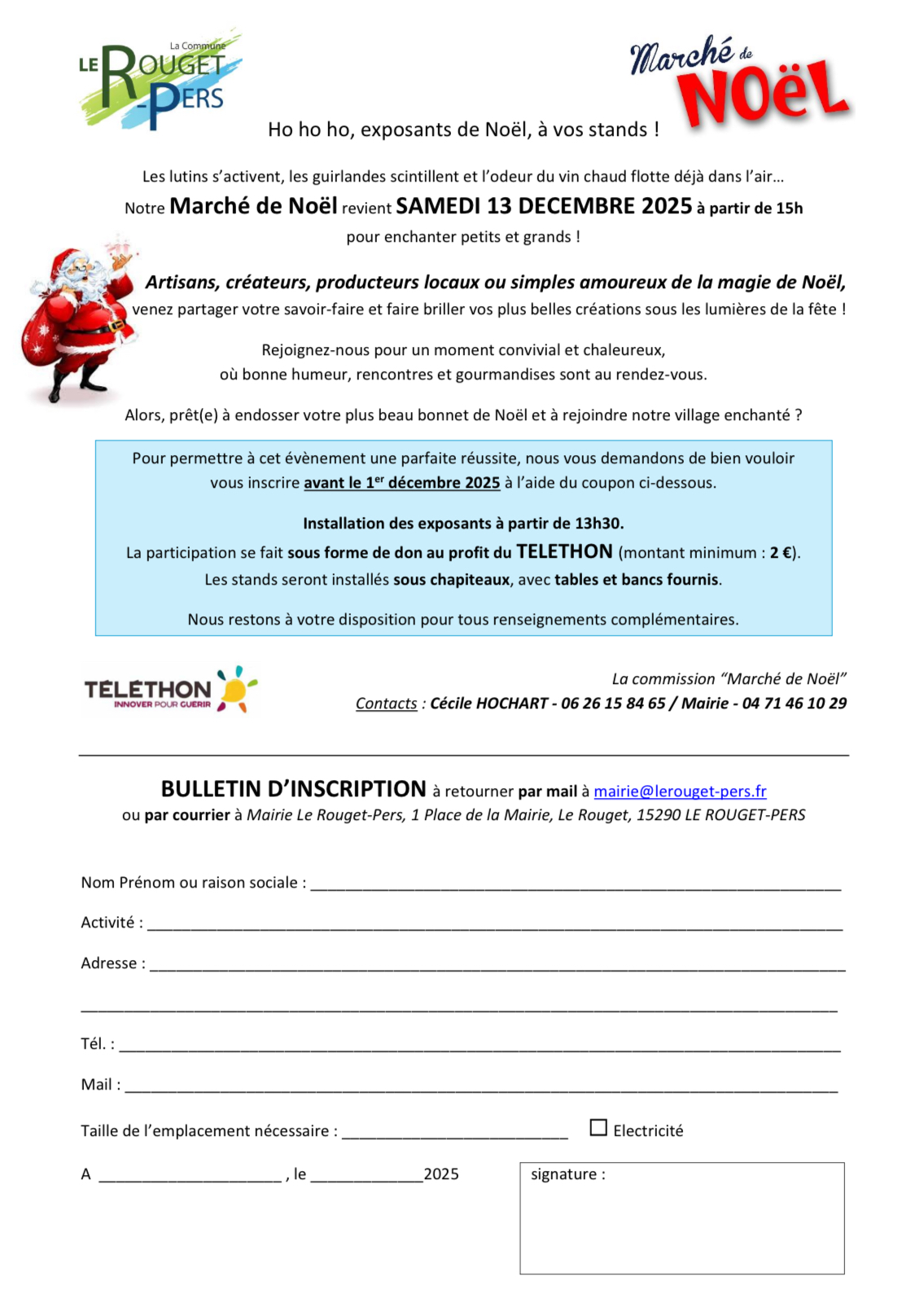 Inscription pour le Marché de Noël